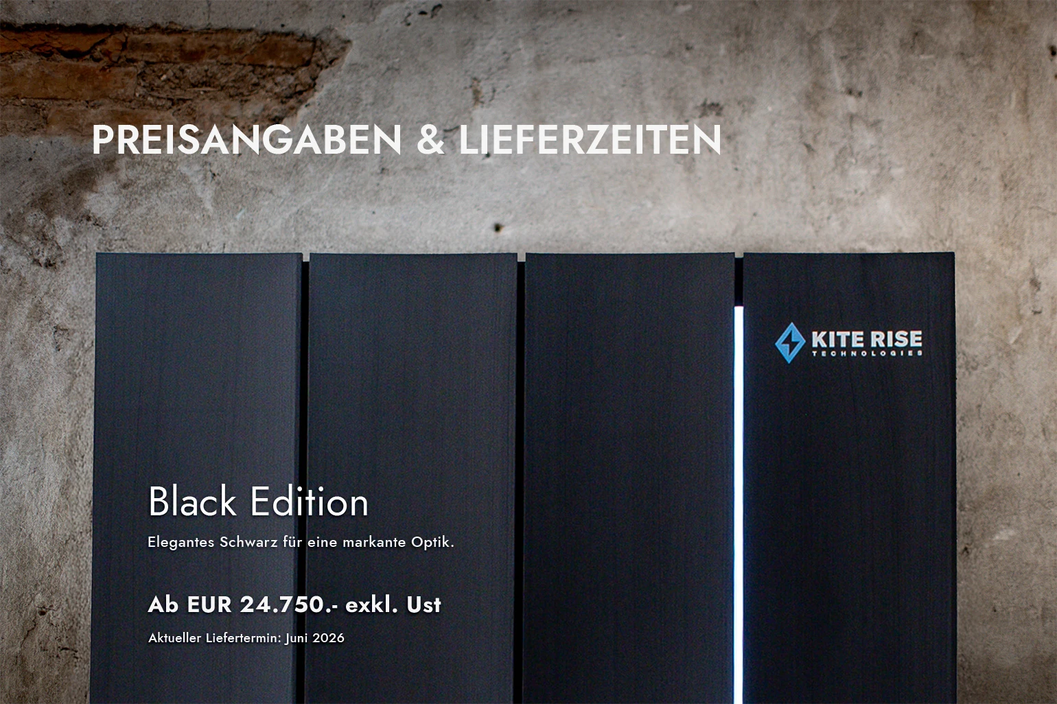 Innovation bedeutet Veränderung. Kite Rise Technologies entwickelt seine Systeme kontinuierlich weiter; technische Änderungen und Weiterentwicklungen bleiben vorbehalten. Maßgeblich sind die Angaben in der Bestellbestätigung bzw. im Kaufvertrag. 1 Technische Details und Informationen zum Anschluss, beispielsweise für PV oder EMS, entnehmen Sie bitte dem Datenblatt des SMA Smart Energy. 2 Siehe Garantiebedingungen .